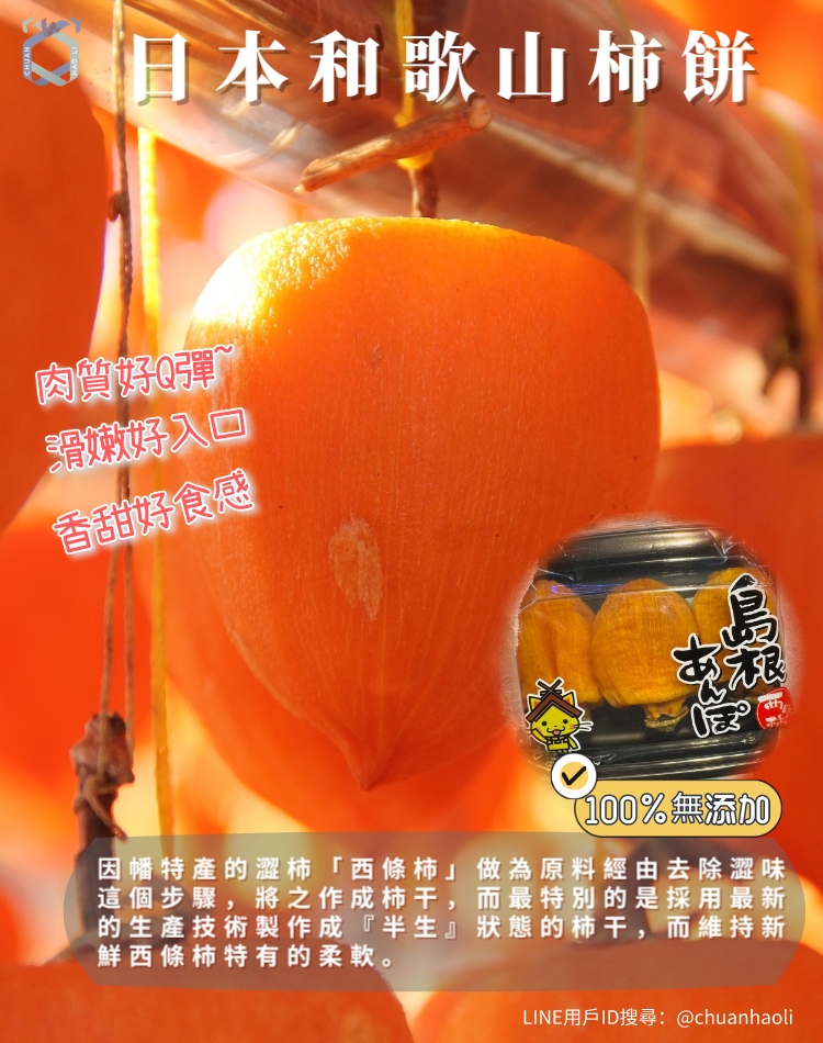 日本柿餅的季節來臨囉,這也是每年愛吃柿類的饕客最期待的時期,柿餅與柿干不同,柿餅的口感較綿密、水份較多、甜度較高,且柿子味非常的濃郁且不膩哦!