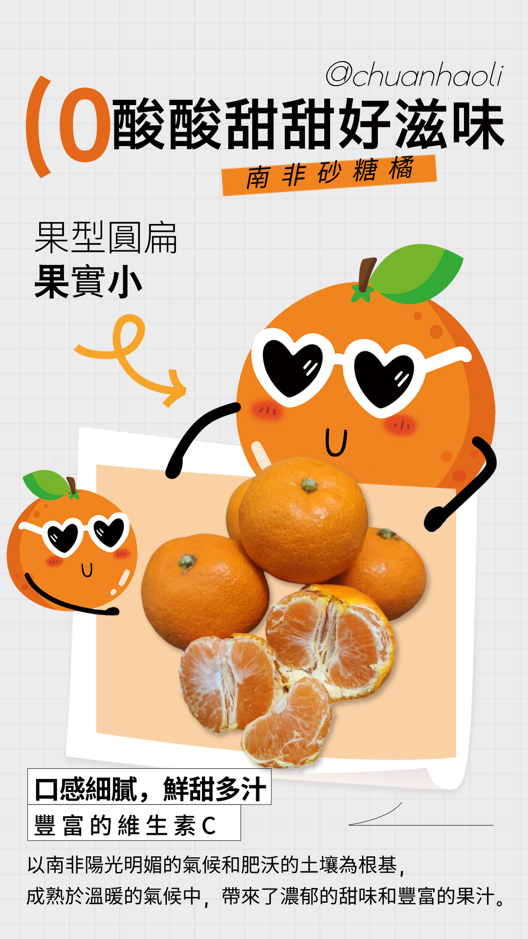 ✦商品介紹✦ 產地: 美國🇺🇸新鮮空運✈️✈️✈️ 保存方式:冷藏保存約2-3週,常溫保存約1週。 ※砂糖橘若覺得偏酸可放置3-7天會自然退酸 ※果肉中咖啡色糖化結晶為正常,自然熟成即消失 懶人適用指數:★★★★★★ 食用幸福指數:(❁´◡`❁)*✲゚*♥️♥️♥️♥️♥️♥️♥️